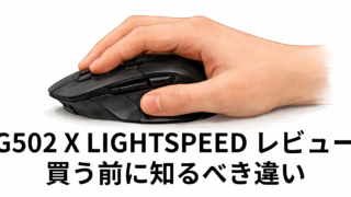Logicool G502 X LIGHTSPEEDを実体験ベースでレビュー。G502 X PLUS LIGHTSPEED 違いも比較し、重量・バッテリー・RGBの差を整理。どちらを選ぶべきか迷っている方へ。