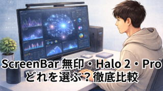 BenQ ScreenBar 無印、Halo 2、Proの違いを徹底比較!価格・機能・給電方式など基本スペックから、あなたに最適なモデルが分かる完全ガイド。初心者向けの無印、バックライト搭載のHalo 2、自動調光のProを詳しく解説します。